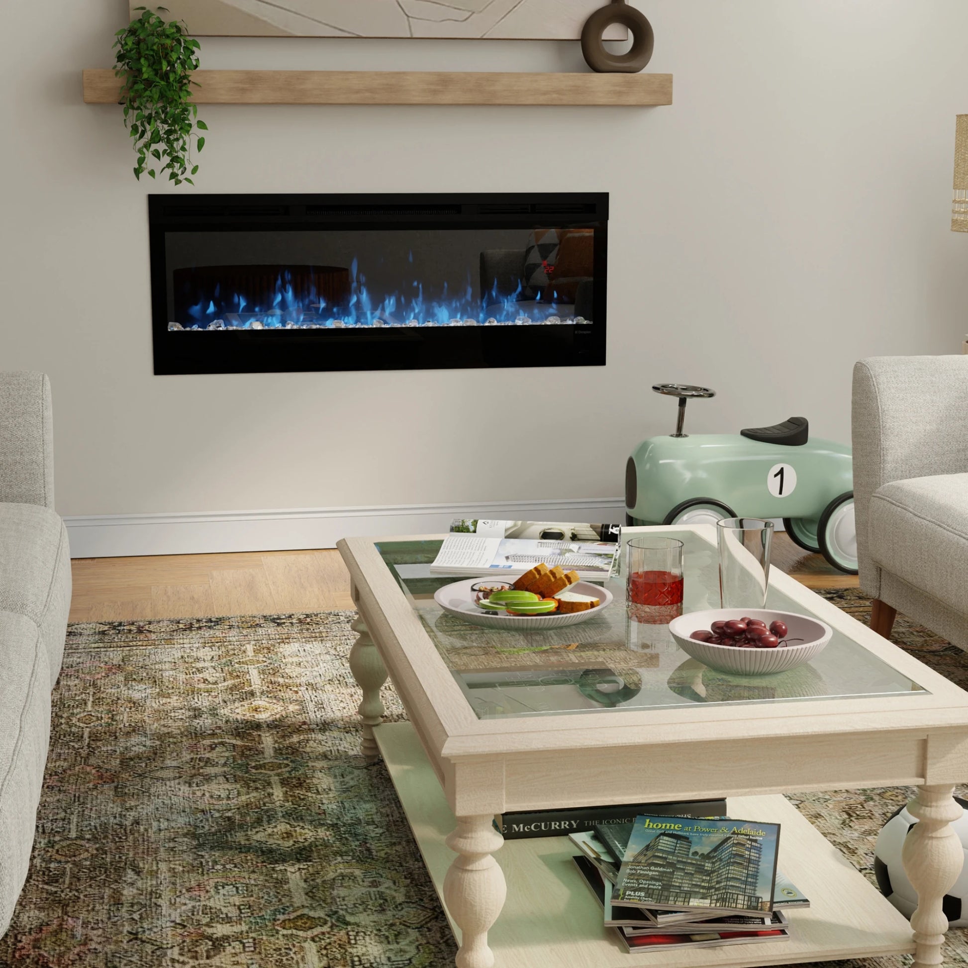 Bring vibrant, modern ambiance and flexible warmth to your home with the Dimplex Prism Linear Electric Fireplace series, available in 34", 50", and 74" widths to suit different room sizes and décor styles. With its slim, linear design it can be wall-mounted, recessed, or partially recessed — making it ideal for media walls, living rooms or open-concept interiors. The Prism’s advanced LED flame technology projects dynamic flames dancing over a sparkling, diamond-like acrylic ice ember bed, offering a full spectrum of RGB colors to match your mood or décor. Adjustable flame brightness and speed, combined with a powerful fan-forced heater (suitable for supplemental heat up to around 1,000 sq ft) provide both cozy warmth and eye-catching visual appeal. Flame-only mode lets you enjoy the show all year round without heat, while the included remote control and built-in controls make operation simple and intuitive. Sleek, stylish, and low-maintenance, the Prism series transforms any space into a modern, inviting retreat.
