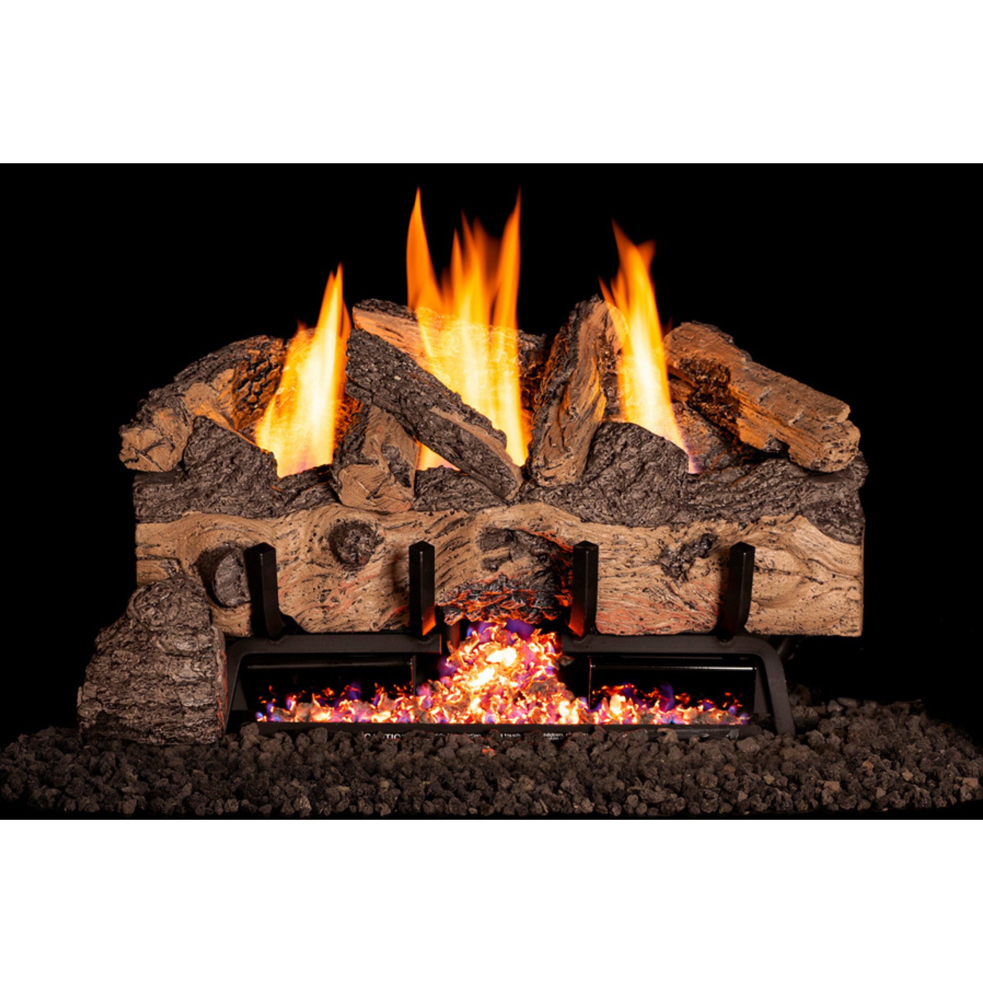 The Real Fyre Charred Gnarled Split Gas Log Set brings dramatic fireside presence and rugged character to any gas fireplace. Each log is handcrafted from real wood molds to capture authentic grain, twisted bark texture, and rich charred detailing for a highly realistic firebed. Designed for use with compatible gas burners, the logs allow flames to weave naturally through and around the arrangement, creating inviting warmth and cozy ambiance. Built for high-heat performance and lasting durability, this gas log set enhances both traditional and contemporary fireplace settings. Ideal for homeowners seeking bold visual texture, distinctive style, and timeless hearth appeal in any interior space.