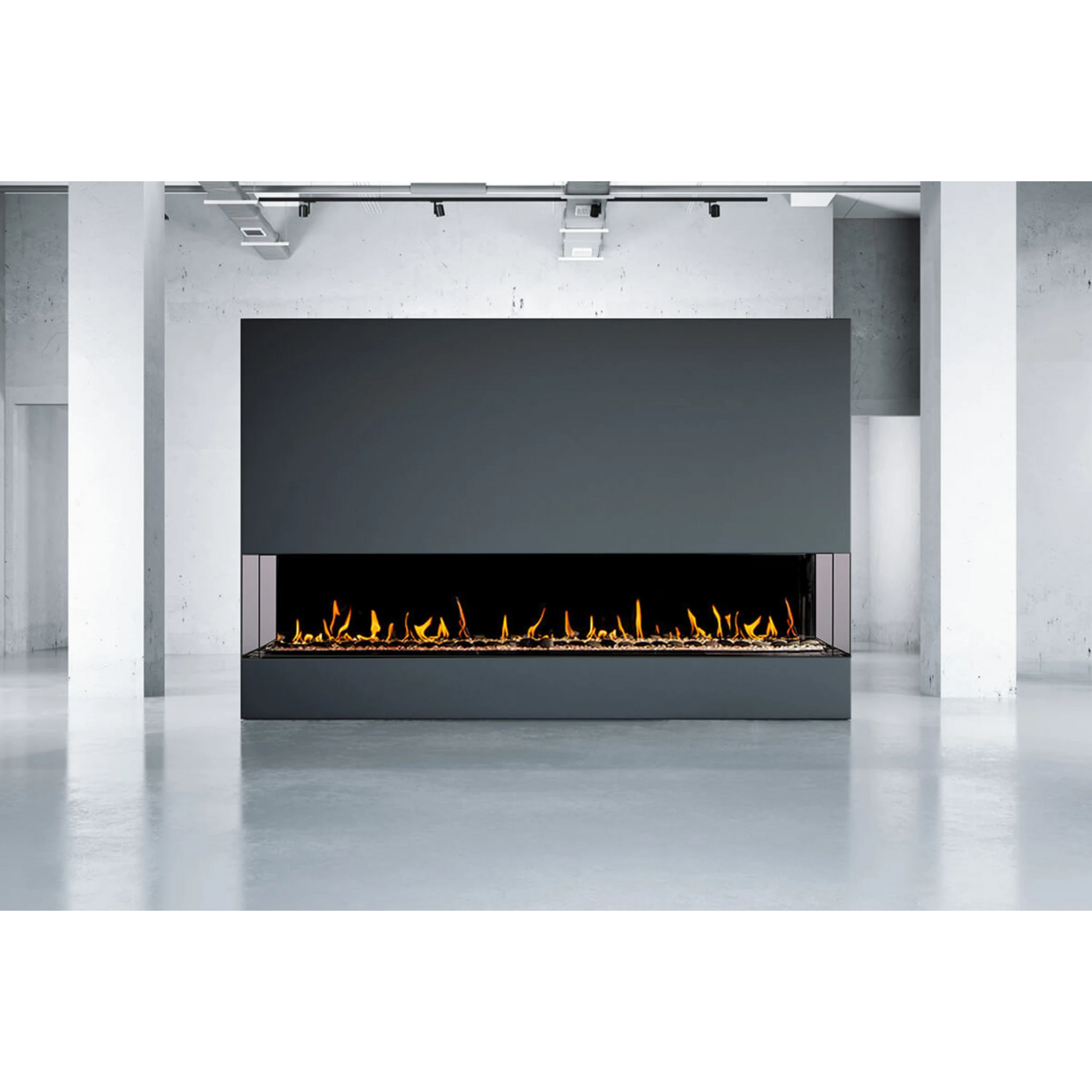 The Large Double-Corner Modern Fireplace is a striking, space-efficient solution that brings architectural elegance and warmth to any interior. With its dual-corner installation, this linear fireplace anchors two adjoining walls simultaneously — creating a dramatic, room-defining presence without sacrificing open flow. Its frameless glass enclosure delivers a continuous, natural flame that enhances both residential and commercial environments with depth and ambience. Optional upgrades like double-glass safety panels, reflective back surfaces, LED accent lighting, and advanced controls let you tailor both style and comfort. Sleek, impactful, and versatile, this fireplace transforms corners into refined, cozy focal points.